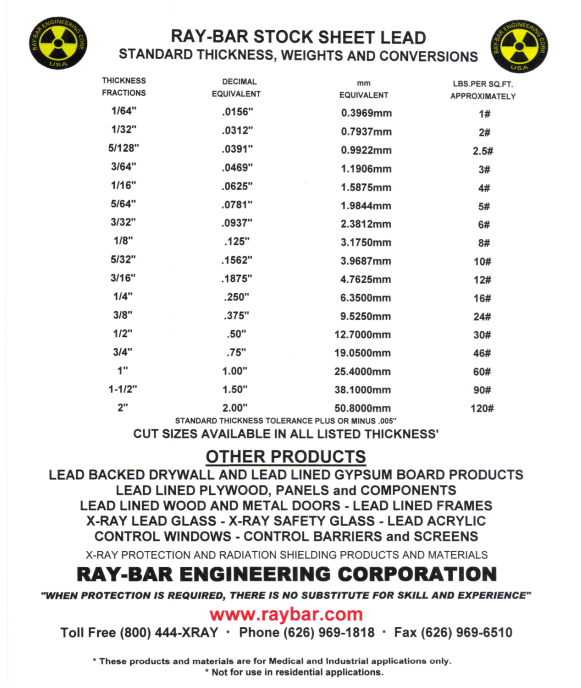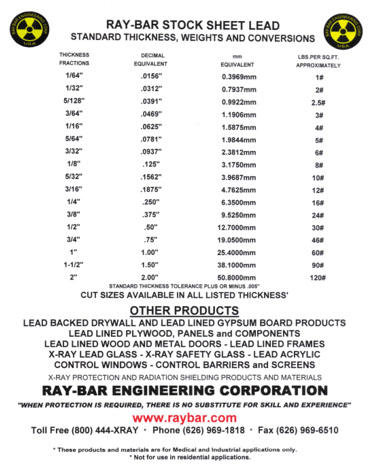 Lead Lined 5/8" or 1/2" Gypsum Board Drywall is available in 12 standard thickness levels for Radiation Shielded Wall System Assemblies in Medical or laboratory applications.